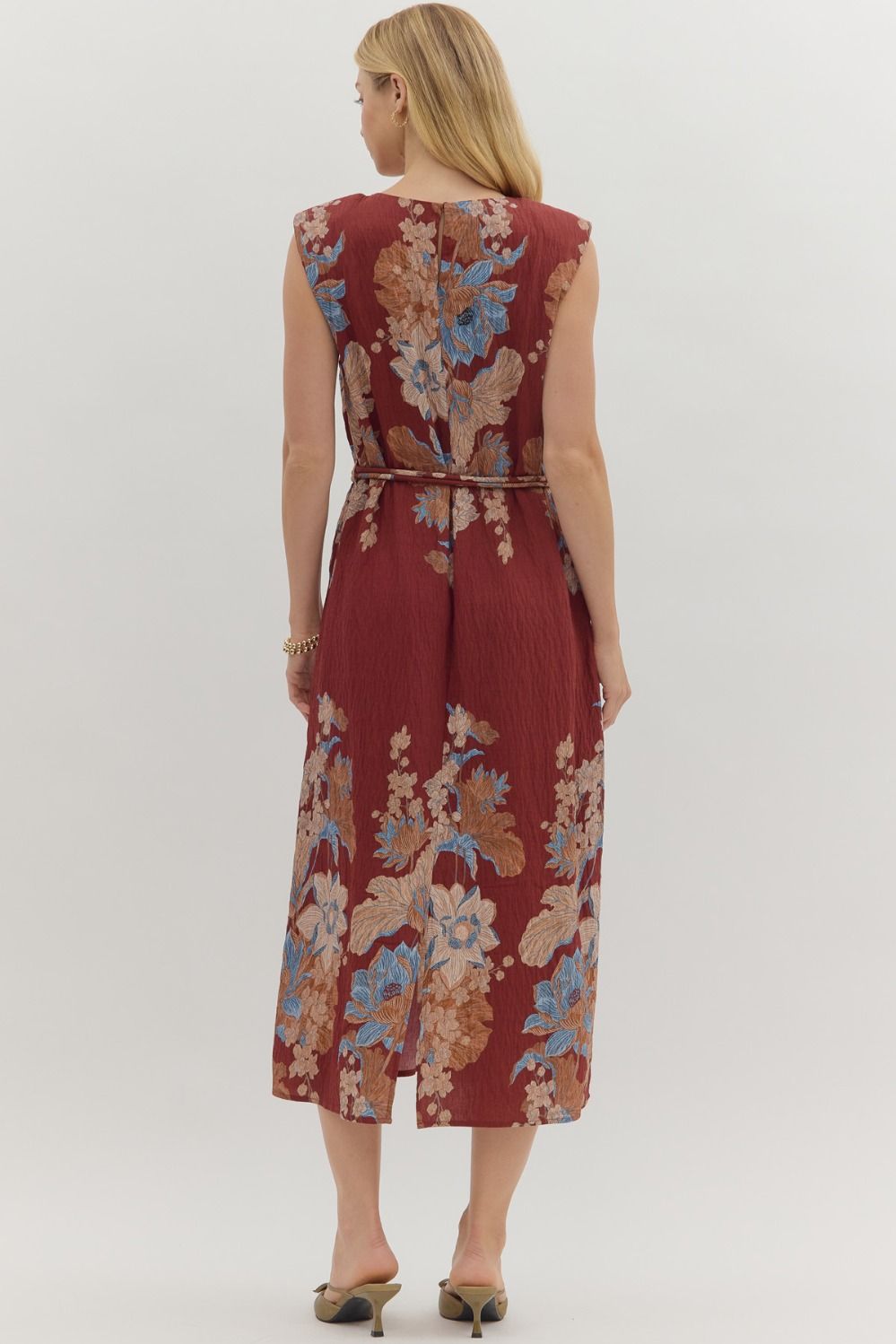 Featuring a round neckline, self-tie waist with metal tips. Lined. Woven. Non-sheer. Lightweight.
